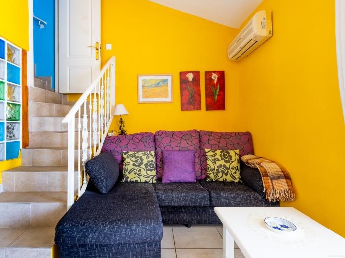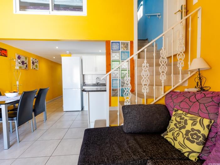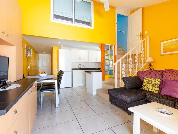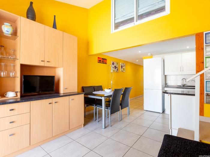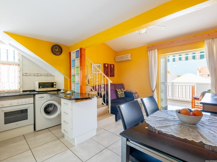 Este encantador apartamento en Los Cristianos, Tenerife, es ideal para unas vacaciones relajantes. Con un diseño de dos plantas, ofrece un ambiente vibrante y cálido que te hará sentir como en casa desde el primer momento.