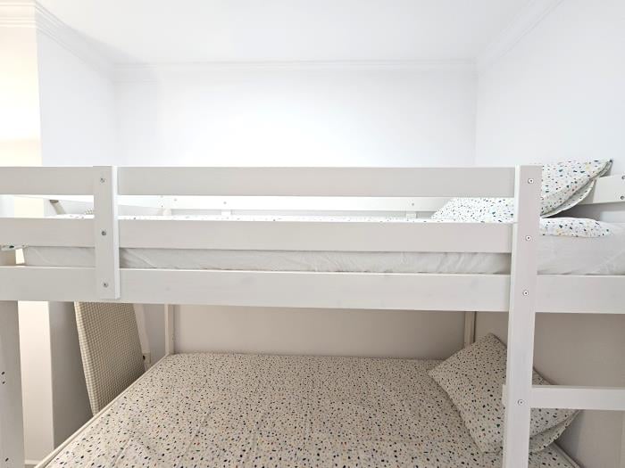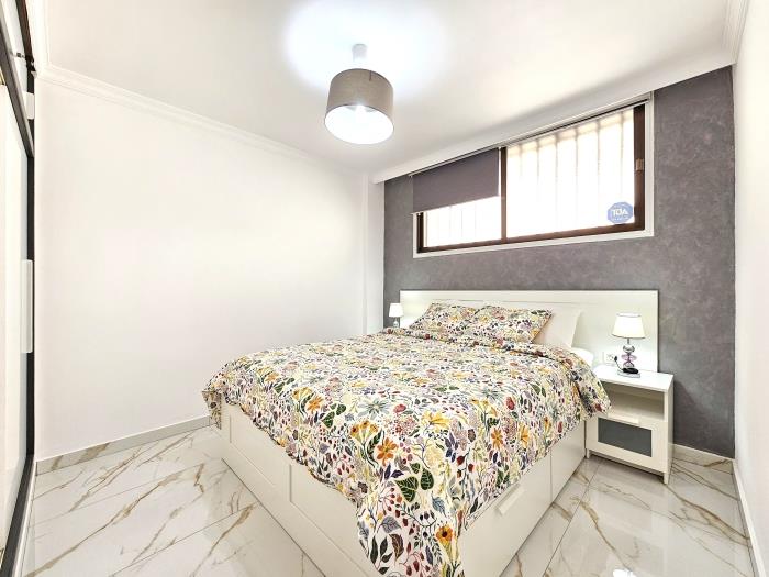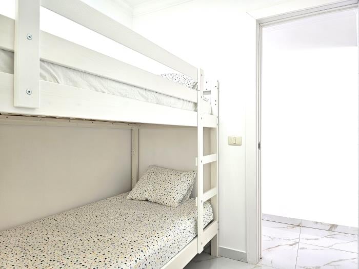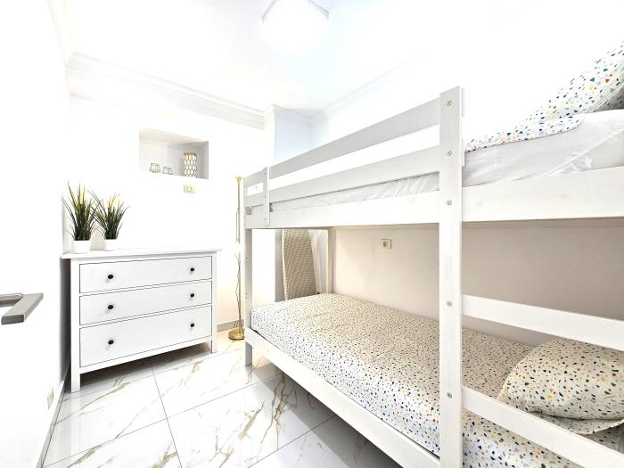 El apartamento dispone de dos habitaciones: una amplia y luminosa habitación con cama de matrimonio, y una segunda habitación con una práctica y cómoda litera, ideal para niños o jóvenes. Cada rincón ha sido cuidadosamente decorado para crear un ambiente acogedor y funcional, donde te sentirás como en casa desde el primer momento.