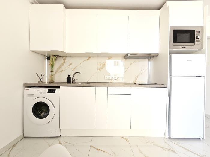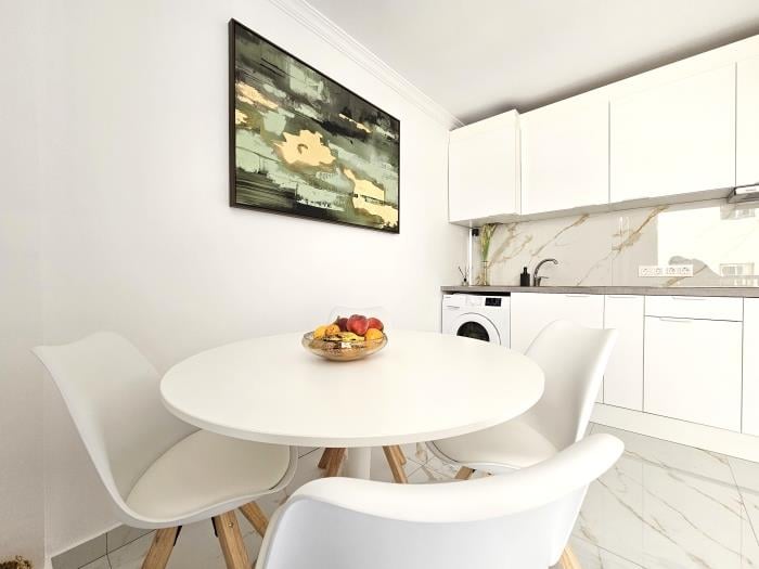 Además, encontrarás todo lo que necesitas a tan solo unos metros del apartamento: supermercados, tiendas, farmacias, cafeterías, restaurantes y paradas de autobús. No necesitas coche para moverte por la zona, aunque si lo deseas, hay taxis disponibles a precios asequibles y excelentes conexiones de transporte público para explorar el resto de la isla.