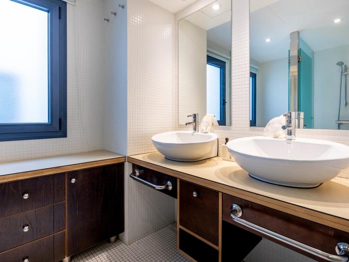 La vivienda cuenta con dos amplios dormitorios, uno con cama doble y otro con dos camas individuales, ideales para familias o grupos de hasta cuatro huéspedes. Dispone además de dos baños completos y un gran vestidor, ofreciendo todo el espacio y la comodidad necesarios para una estancia agradable y relajada.