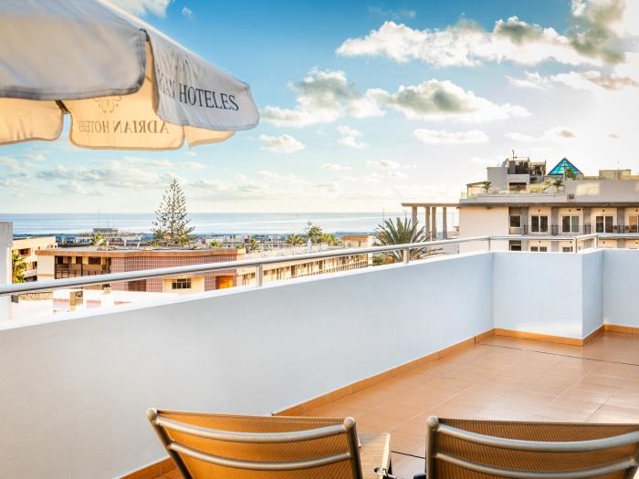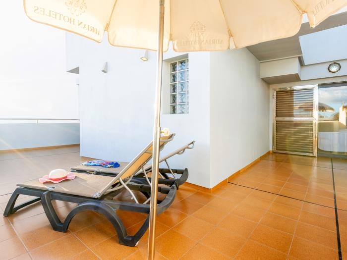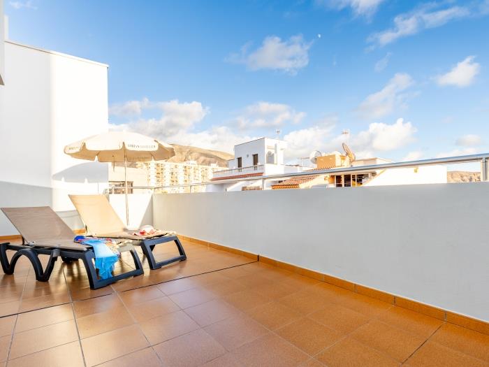 El gran protagonista es su impresionante terraza privada, un espacio amplio, soleado y muy tranquilo donde podrás desayunar al aire libre, relajarte con una copa al atardecer o simplemente disfrutar del clima privilegiado del sur de Tenerife durante todo el año. Este rincón exclusivo es perfecto para descansar, tomar el sol y desconectar, disfrutando de total privacidad en pleno centro de Los Cristianos.